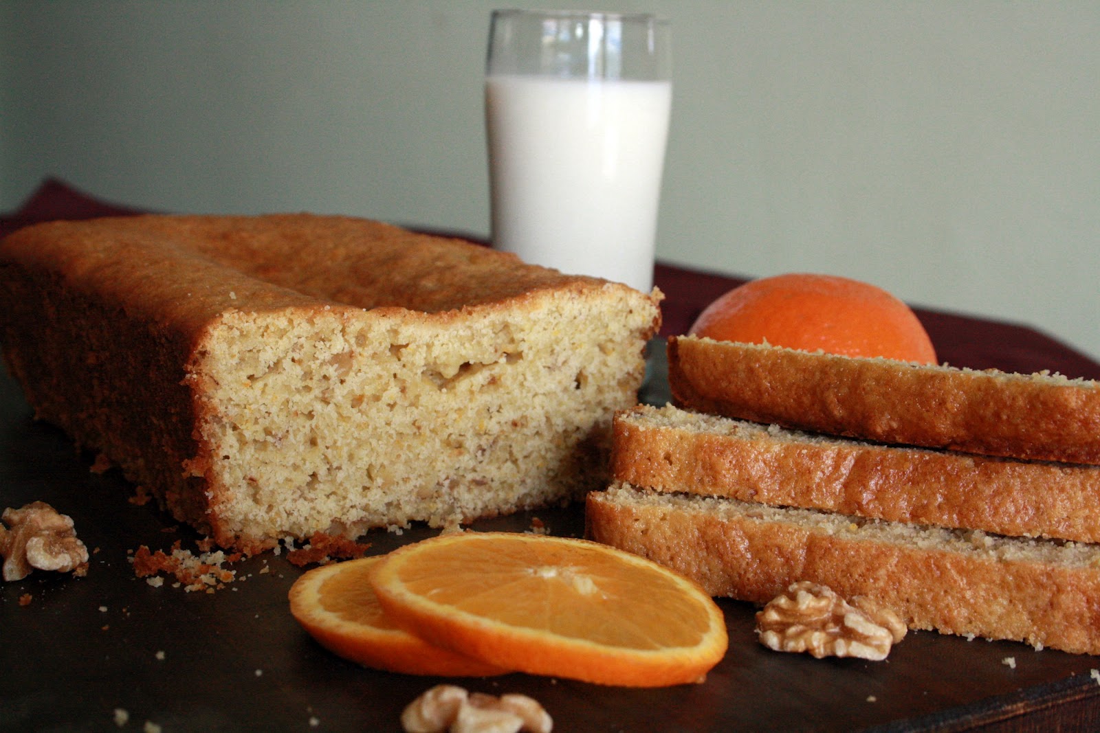 Like this bread. It's super tasty! Like banana bread kicked up a notch... except, you know, minus the bananas. Soft and dense with a subtle sweetness, a slight crunch from the earthy walnuts, and beautiful orange-y notes that sing, "Good morning, sunshine!" It's the perfect complement to your morning cup of coffee or glass of milk... a seriously sweet way to start your day. And it's seriously too good to pass up this citrus season. Trust me!